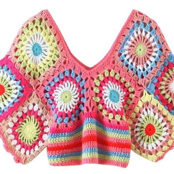 RT231001 Crochet fait main européen évidé coupe ample manches cinq quarts haut court couverture châle Outwear