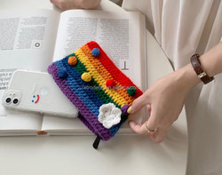 RT21049 porte-monnaie en tricot pochette compacte à fermeture éclair sac étudiant clé de pièce sac de téléphone portable accessoires Photo