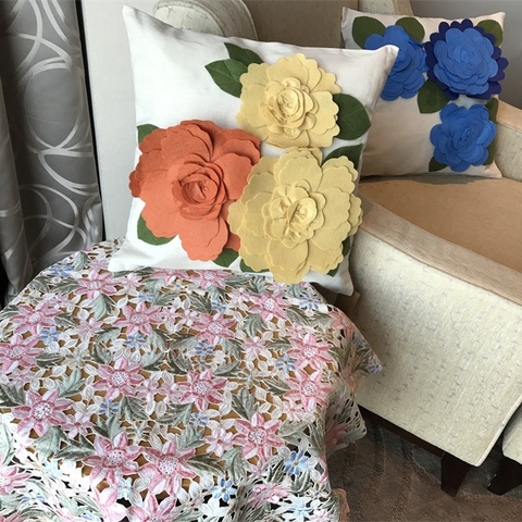 Özelleştirilmiş OEM RT17050 100% el nakışı 3D çiçek minder örtüsü