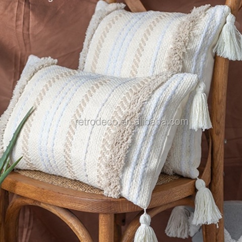 RT19022 100% uzun püskül pamuk ve el tığ işi minder örtüsü